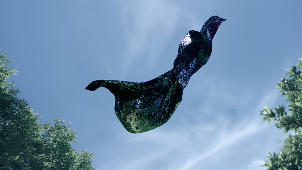 This transformation mirrors the shift from passively accepting death to actively resisting it. The dynamic movement of the flag, as it is swept by the wind, represents the individual’s struggle with death and symbolizes the philosophical shift from submission to defiance. Initially, the flag’s front attempts to harmonize, but as it swings, it begins to manifest its conflict with the environment. The complexity of the life-death dichotomy starts to unfold, as the individual’s independence, resistance, and true essence gradually emerge through the flag's movement—this is not just a resistance to death but a reclaiming of the meaning of life itself.